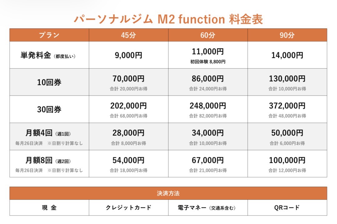 本ジムでは「単発料金」「回数券」「月額制」の3つのプランを用意しております。